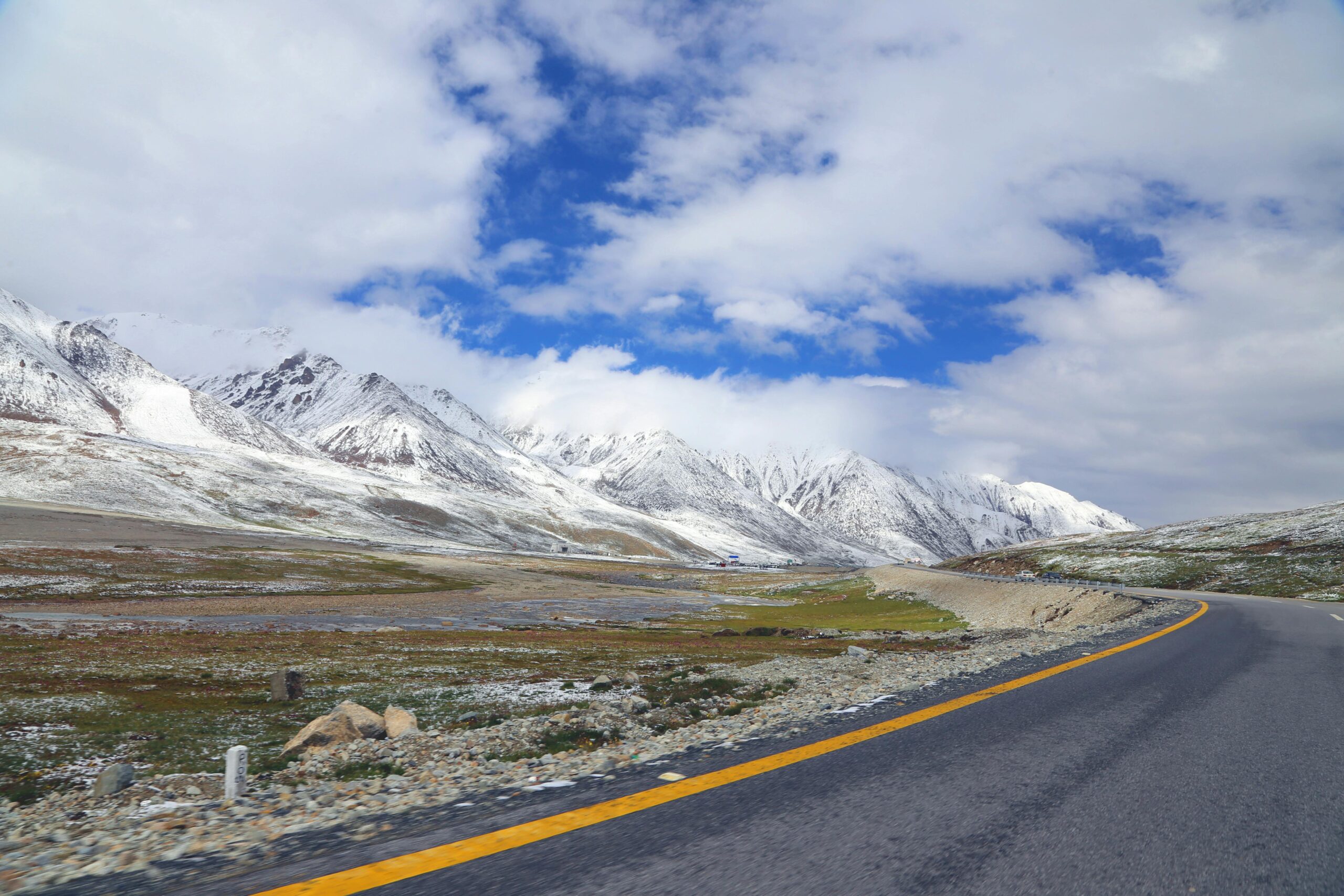 The Karakoram Highway experiences varied weather along its length due to changing elevations. Spring (March–May) brings blooming valleys and moderate temperatures, ideal for sightseeing. Summer (June–August) is warmer in lower regions, with clear skies and lush greenery, but occasional landslides occur due to monsoon rains. Autumn (September–November) offers crisp air and vibrant fall colors, while Winter (December–February) is cold, with heavy snowfall at higher altitudes, especially near Khunjerab Pass. Each season offers a unique experience, from vibrant landscapes in summer to snow-covered peaks in winter, making the highway a year-round attraction for travelers and adventurers.